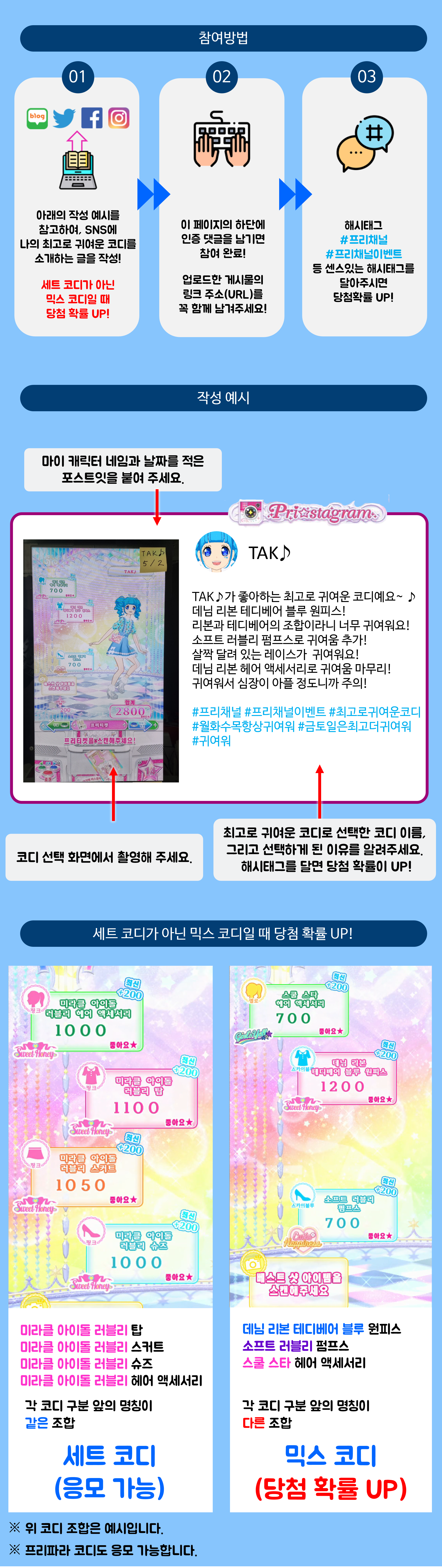 - 코디에 제한은 없으며, 프리파라 코디도 응모 가능합니다.