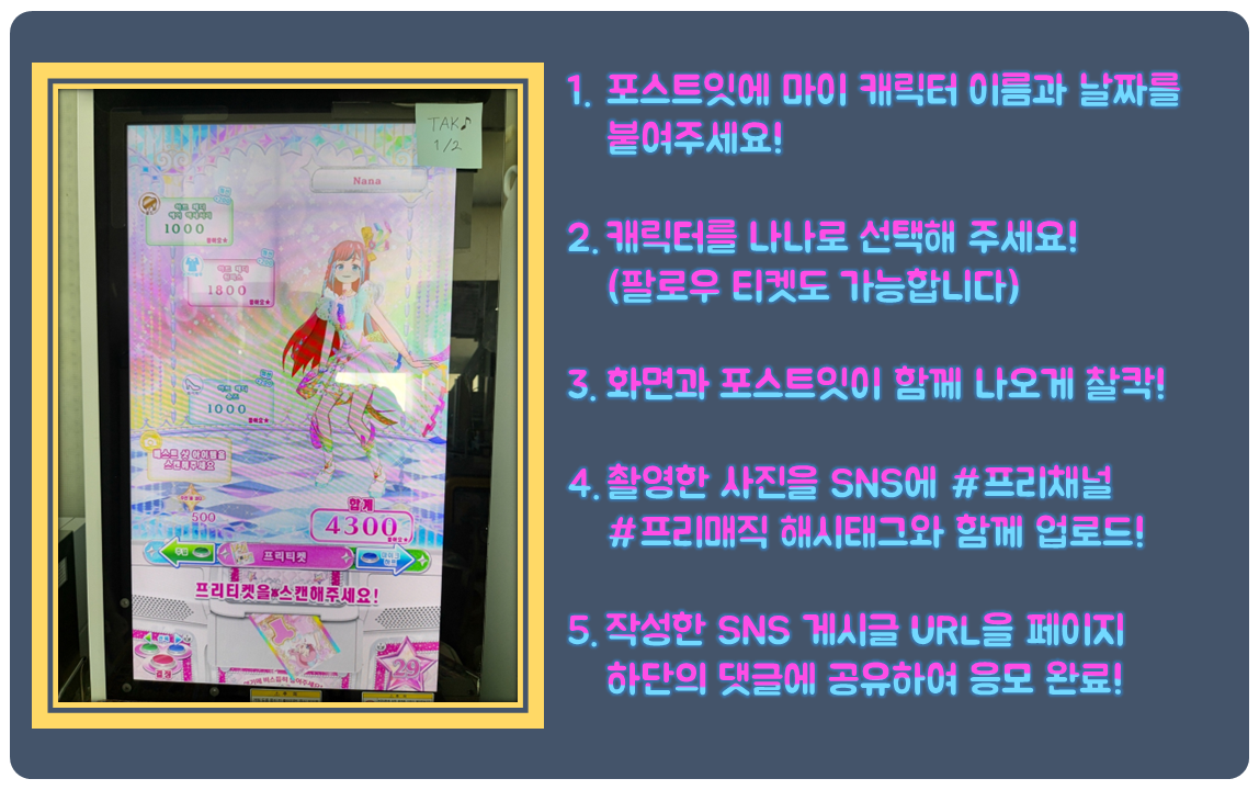 | [당첨자 발표] 와츄 프리매직! 스페셜 채널 오픈 기념! 나나와 함께 라이브에 도전! (2) | 2023.01.31 |