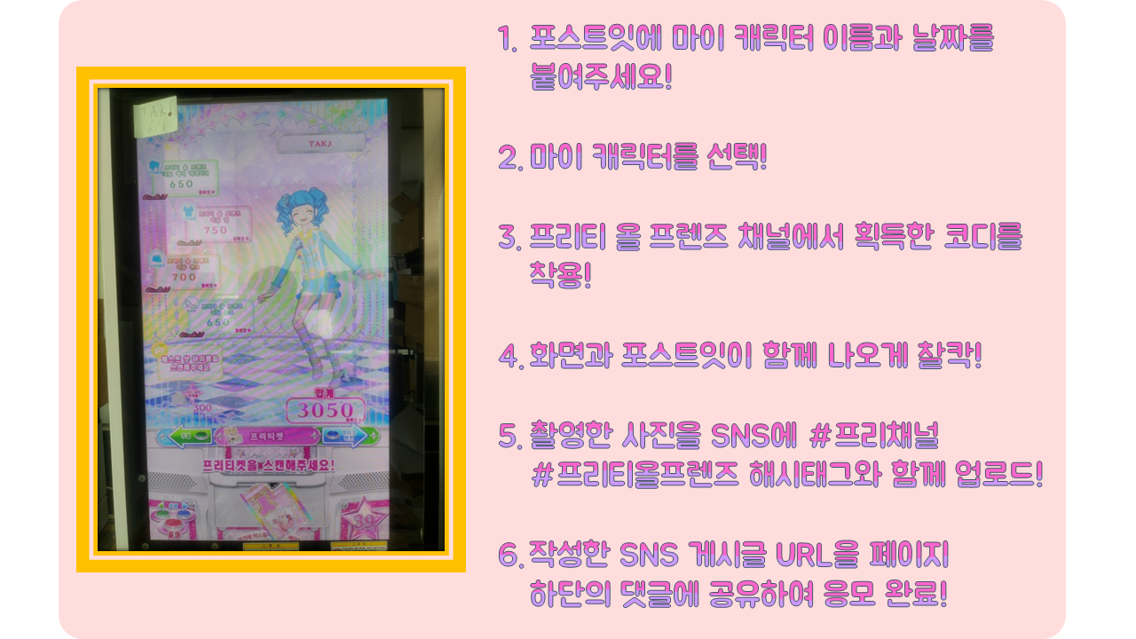 - 코디는 프리티 올 프렌즈 채널에서 배출되는 코디만 응모 가능합니다.