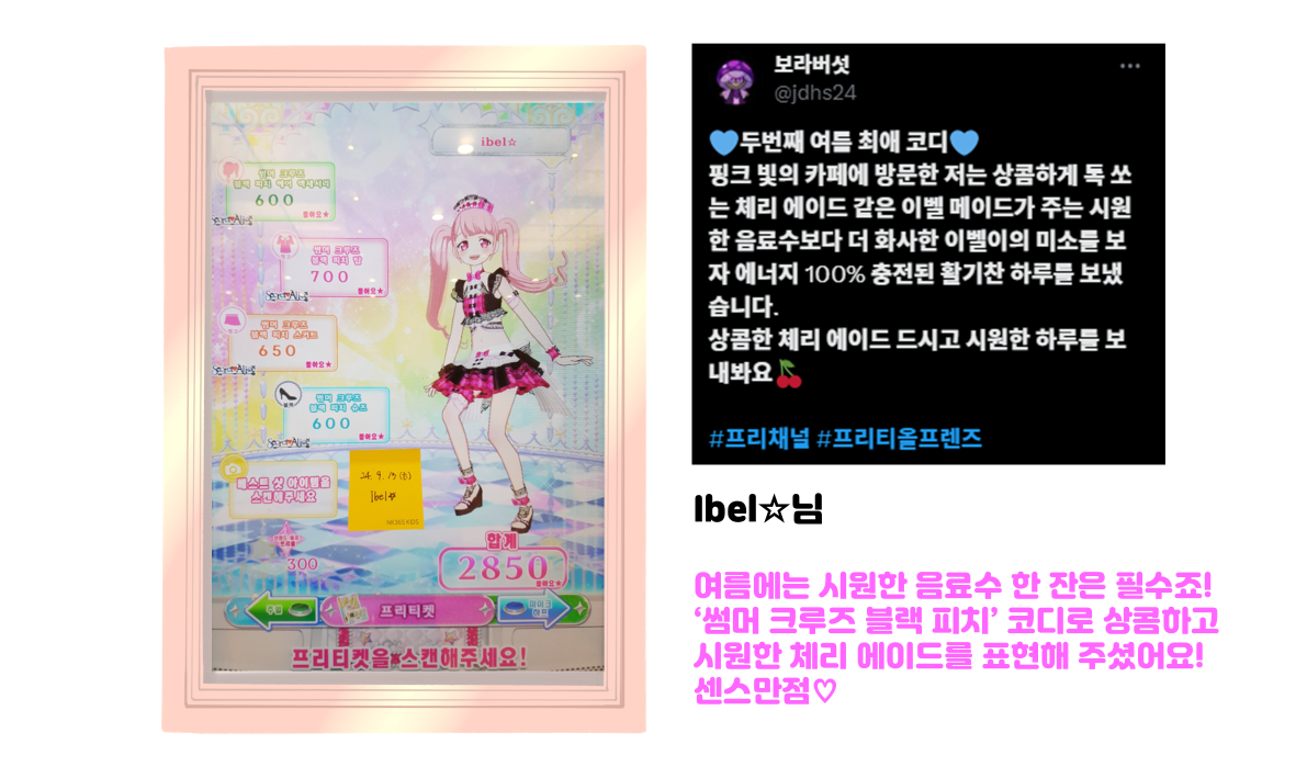 | [당첨자 발표] 마이캐릭터 최애♡코디 콘테스트 제 2탄 결과 발표! (0) | 2024.11.26 |